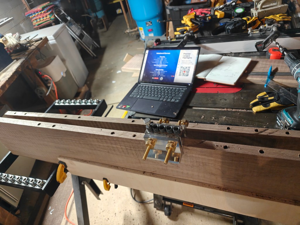 - The section with the inlaid dowels is perfectly smooth but not perfectly flat. I am not sure why this is or how to address it in the future, but I love the look of brass inlaid in walnut so I will need to figure it out.