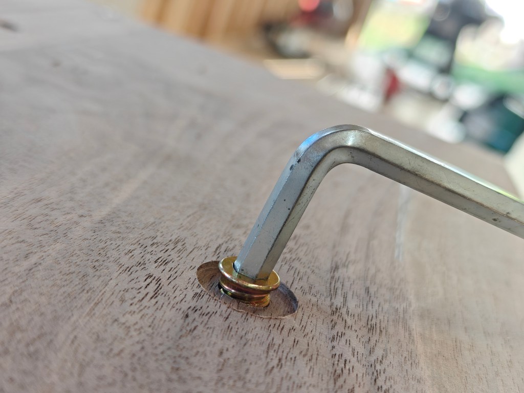 - The dowels holding the legs to the top didn’t all align perfectly. This is invisible and also doesn’t matter from a practical standpoint; no one would ever know if I didn’t tell them. But I know (and now so do you, I guess).